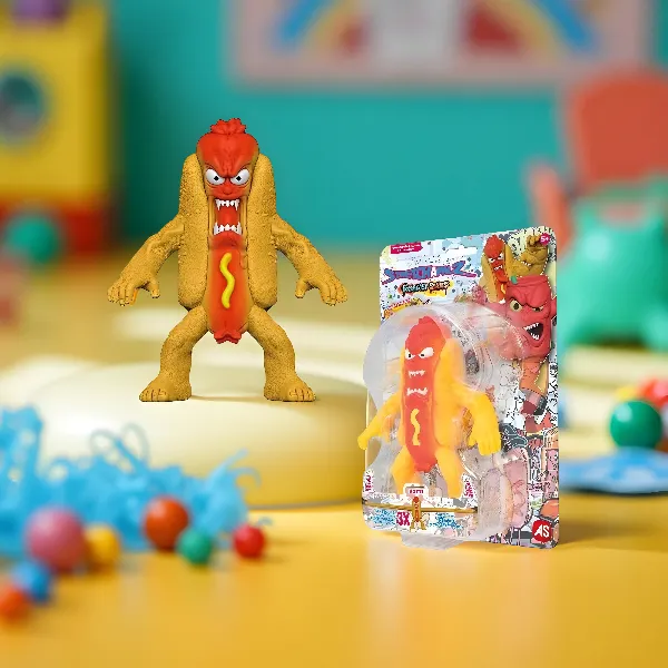 • العلامة التجارية: سترتشابالز • العمر: 5 سنوات فما فوق – مثالي للأطفال الذين يحبون اللعب الحسي والتخيلي • وحوش بطابع الطعام – شخصيات ممتعة على شكل تاكو، ساندويتش، هوت دوغ، مشروبات والمزيد • قابل للتمدد الفائق – يمكن مده حتى 3 أضعاف حجمه الأصلي ويعود كما كان • مليء برمل الكوارتز – يمنح ملمساً قابلاً للضغط والتشكيل • يعزز الإبداع – يشجع الأطفال على اللعب القصصي والاستكشاف الحسي وجمع الشخصيات المختلفة