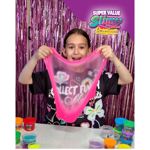 • العلامة التجارية: سلايمي • العمر: 3 سنوات فما فوق • عبوة القيمة الممتازة: تحتوي على 12 عبوة فردية من السلايم بوزن 112 جرام (4 أوقية) لكل منها • عدة أنواع من السلايم لتجارب لعب متنوعة • مصنوع من مكونات غير سامة وآمنة للأطفال