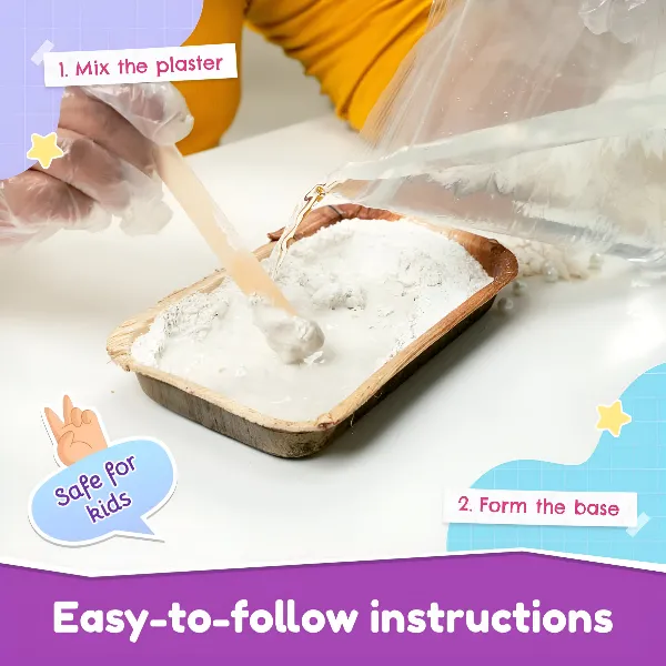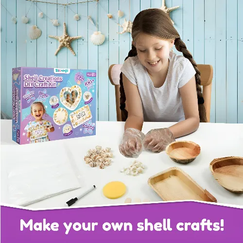 • Brand: BLOOMINGO • Age: 5+ years • Complete kit includes 3 Areca-leaf moulds, 80 decorative shells, 15 pearls, plaster packets, crafting tools, and detailed instructions • Create 3 charming projects: personalised nameplate, decorative photo frame, and stylish coaster • Designed to develop creativity and fine motor skills in children aged 5 and above • Includes gloves, sponge, black marker, and strings for a full crafting experience