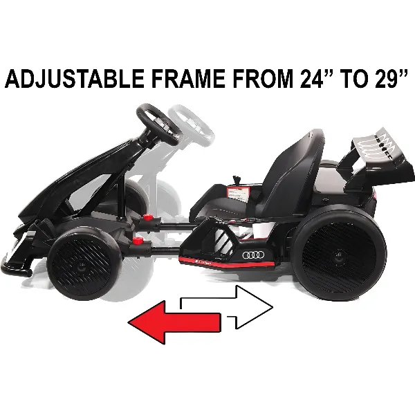 • Brand: Audi • Age: 6+ (under adult supervision) • Powerful Performance: Dual 24V SLA batteries, two 150W high-torque motors, and 3-speed control (4–8 mph). • Adjustable Design: 3-level body frame (24"–29") with sport-style bucket seat and 2-point safety belt. • Realistic Features: LED headlights, tail light bar, horn, sound buttons, drift/normal mode, and EVA foam rubber tires. • Entertainment & Safety: Integrated MP3 player, wireless streaming, smart charging system, soft start, and electric brake.