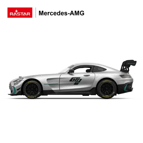 ● Brand : Rastar ● Mercedes-AMG GT2 1:14 scale ● Full remote control: forward, reverse, stop, left & right turns ● Speed up to 5 mph, 2.4GHz frequency for interference-free multi-car racing ● Shock-absorbing suspension and rubber tires for smooth indoor/outdoor play