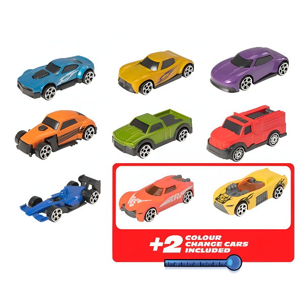 • Brand: Teamsterz • Includes 9x Teamsterz Die-Cast 3-Inch Racing Cars. • Features 2 Water Activated Colour Changing Cars. • Use Both Hot & Cold water to watch your cars transform. • Perfect for Bath time play.