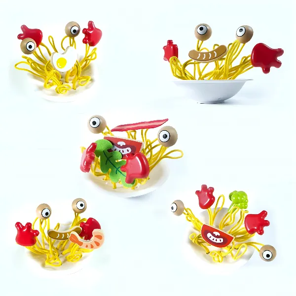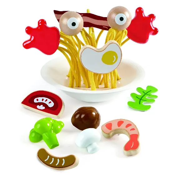 • Brand: HAPE • Age: 3+ • Creative Play: Bend and twist the felt-covered spaghetti and attach 13 wooden ingredients to create fun meals or silly faces. • Skill Development: Encourages imagination, hand strength, fine motor skills, and coordination. • Safe & Kid-Friendly: Soft felt-covered spaghetti and rounded wooden ingredients provide a safe play experience. • Educational Fun: Inspires pretend cooking, creativity, and role-playing for little chefs. • Complete Set: Includes 13 pieces—bendy spaghetti, wooden ingredients, and a bowl for interactive play.
