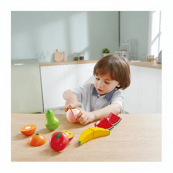 • Brand: HAPE • Age: 2+ • Colorful Playset: Includes 6 vibrant fruits with realistic crunching sounds for engaging pretend play. • Role-Play Fun: Comes with a shopping bag to inspire imaginative trips to the farmer’s market. • Educational Benefits: Promotes social and language skills, understanding of parts and wholes, and organizational skills. • Quality & Safety: Made by Hape, a world-leading educational toy brand, meeting the strictest international safety standards.