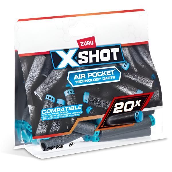 • Brand: X-Shot Excel • Dart Refill Pack: Includes 20 Air Pocket Technology darts for non-stop action • High Performance: Designed for further, faster, and more accurate blasting • Universal Compatibility: Works with most major dart blaster brands • Easy Storage: Comes in a resealable bag for convenient storage and reuse