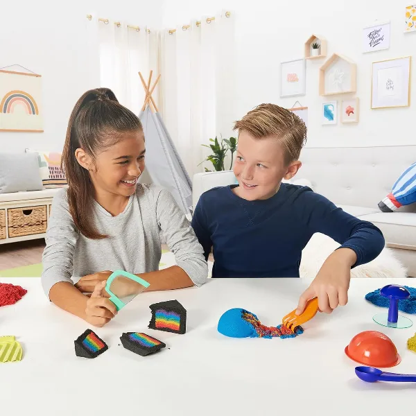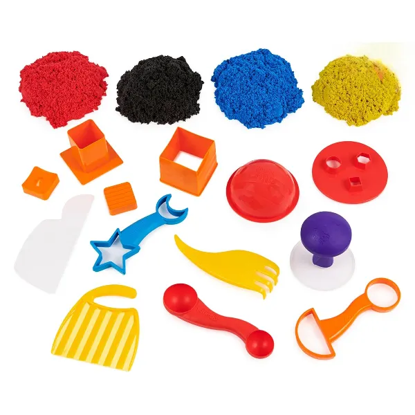 • Brand : KINETIC SAND • 2 lbs of Play Sand: Original Kinetic Sand that flows, oozes, and melts in your hands. • 4 Colors Included: Red, blue, yellow, and rare black sand; mix to create new colors. • 10+ Tools & Molds: Shape, cut, squish, scoop, pull, and reveal fun designs. • Sensory & Creative Play: Encourages imagination, fine motor skills, and stress-free fun. • For Ages 3+: Safe and engaging sensory toy for kids.
